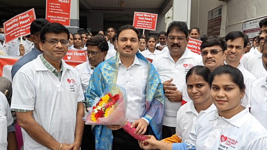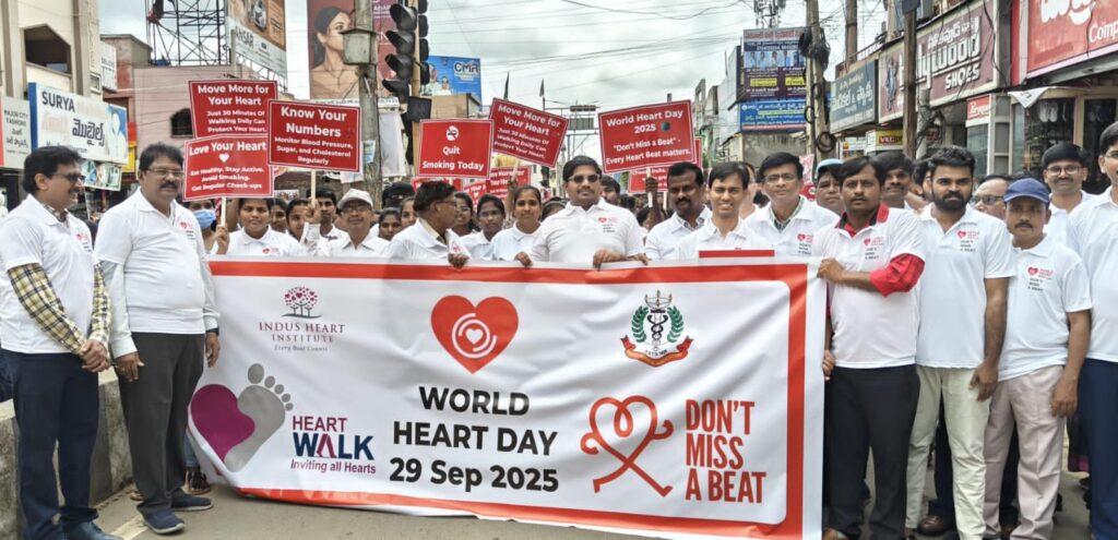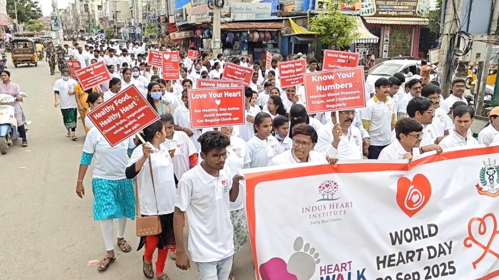 ఇండస్ ఆసుపత్రి నుండి ప్రారంభమైన “గుండె రక్షణ కోసం నడక ” ర్యాలీ సంజీవనగర్ గేట్ వరకు కొనసాగింది.పెద్ద ఎత్తున వైద్యులు, ఆసుపత్రి సిబ్బంది గుండె రక్షణకు సంబంధించిన స్లోగన్లతో కూడిన ప్లకార్డులు ప్రదర్శిస్తూ ర్యాలీ లో పాల్గొన్నారు.