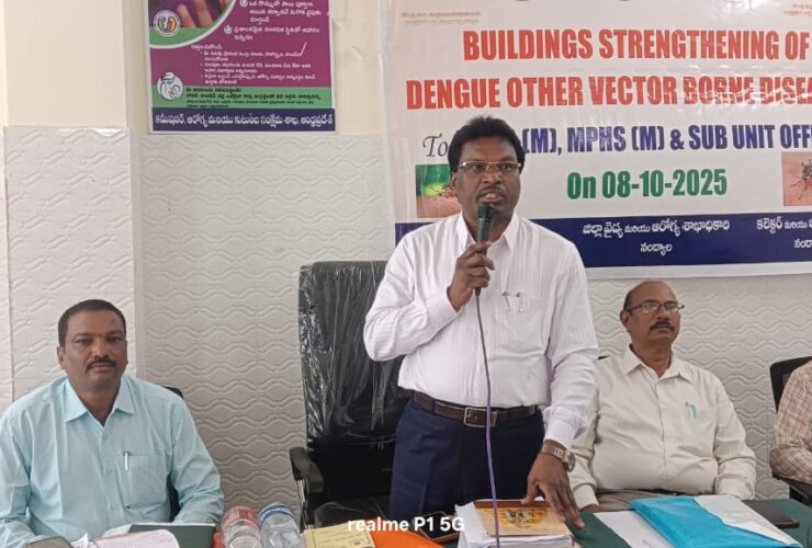నంద్యాల జిల్లా నంద్యాల నందు పట్టణ ప్రాధమిక ఆరోగ్య కేంద్రం పరిధిలోని గాంధీ నగర్ మీటింగు హాల్ నందు జిల్లా వైద్య ఆరోగ్య శాఖ అధికారి ఆర్ వెంకటరమణ ఆధ్వర్యంలో కీటక జనిత వ్యాధుల నియంత్రణ కార్యక్రమం పై అవగాహన మరియు శిక్షణ కార్యక్రమం నిర్వహించడం జరిగింది ఈ కార్యక్రమంలో జిల్లా వైద్య ఆరోగ్య శాఖ ...