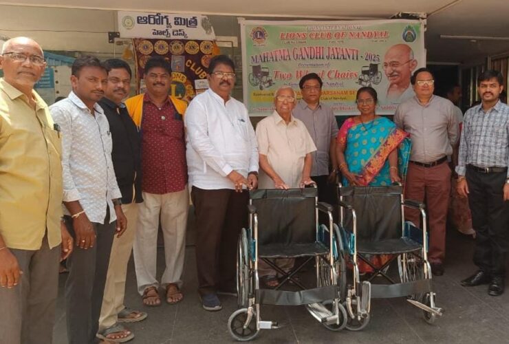 నంద్యాల లయన్స్ క్లబ్ ఆధ్వర్యంలో శనివారం నంద్యాల ప్రభుత్వ సర్వజన ఆసుపత్రిలో రోగుల సౌకర్యార్థం నంద్యాల లయన్స్ క్లబ్ వ్యవస్థాపక సభ్యులు, పారిశ్రామికవేత్త ఆత్మకూరు సుదర్శనం శెట్టి,ఆత్మకూరు నాగభూషణం శెట్టి చారిటీ సౌజన్యంతో రెండు చక్రాల కుర్చీలు ఆసుపత్రి సూపరిండెంట్ డాక్టర్ మల్లీశ్వరి కి అందజేశారు. నంద్యాల లయన్స్ క్లబ్ అధ్యక్షులు సోమేసుల నాగరాజు అధ్యక్షతన ...