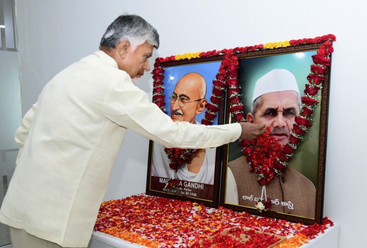 గురువారం జాతిపిత మహాత్మా గాంధీ, మాజీ ప్రధాని లాల్ బహదూర్ శాస్త్రి గార్ల జయంతి సందర్భంగా క్యాంప్ కార్యాలయంలో వారి చిత్రపటాలకు పూలమాల వేసి ముఖ్యమంత్రి చంద్రబాబు నాయుడు నివాళులర్పించారు. ...